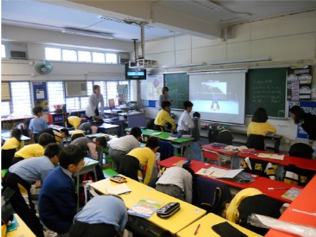 課堂中,跟隨影片邊做動作,邊學習有關健康的知識。