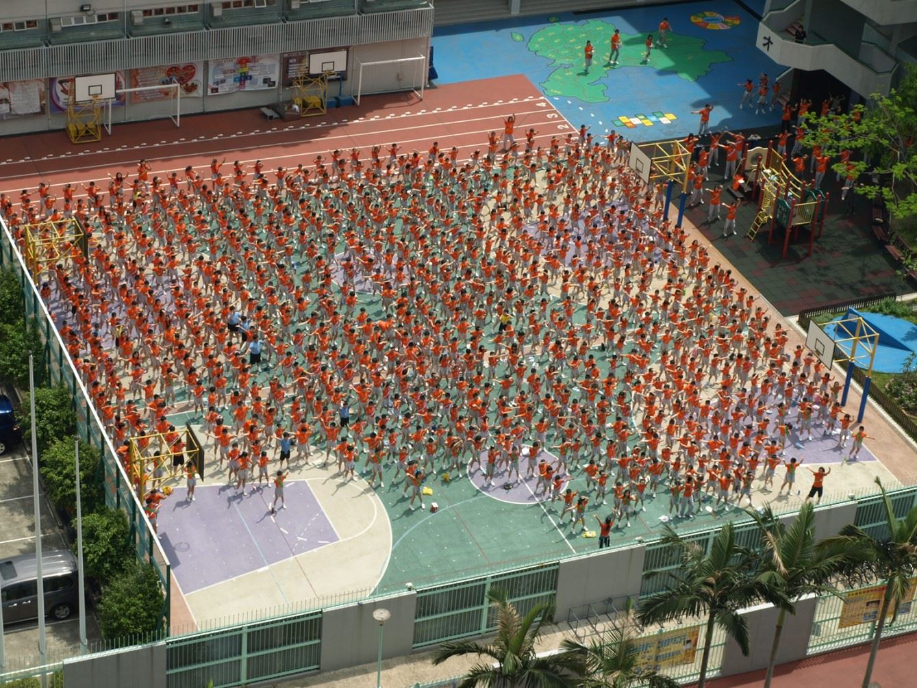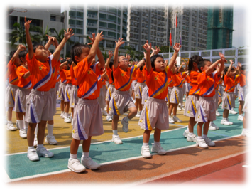 學校每年設計一套形體舞,全校師生於動感小息後一起舞動校園。