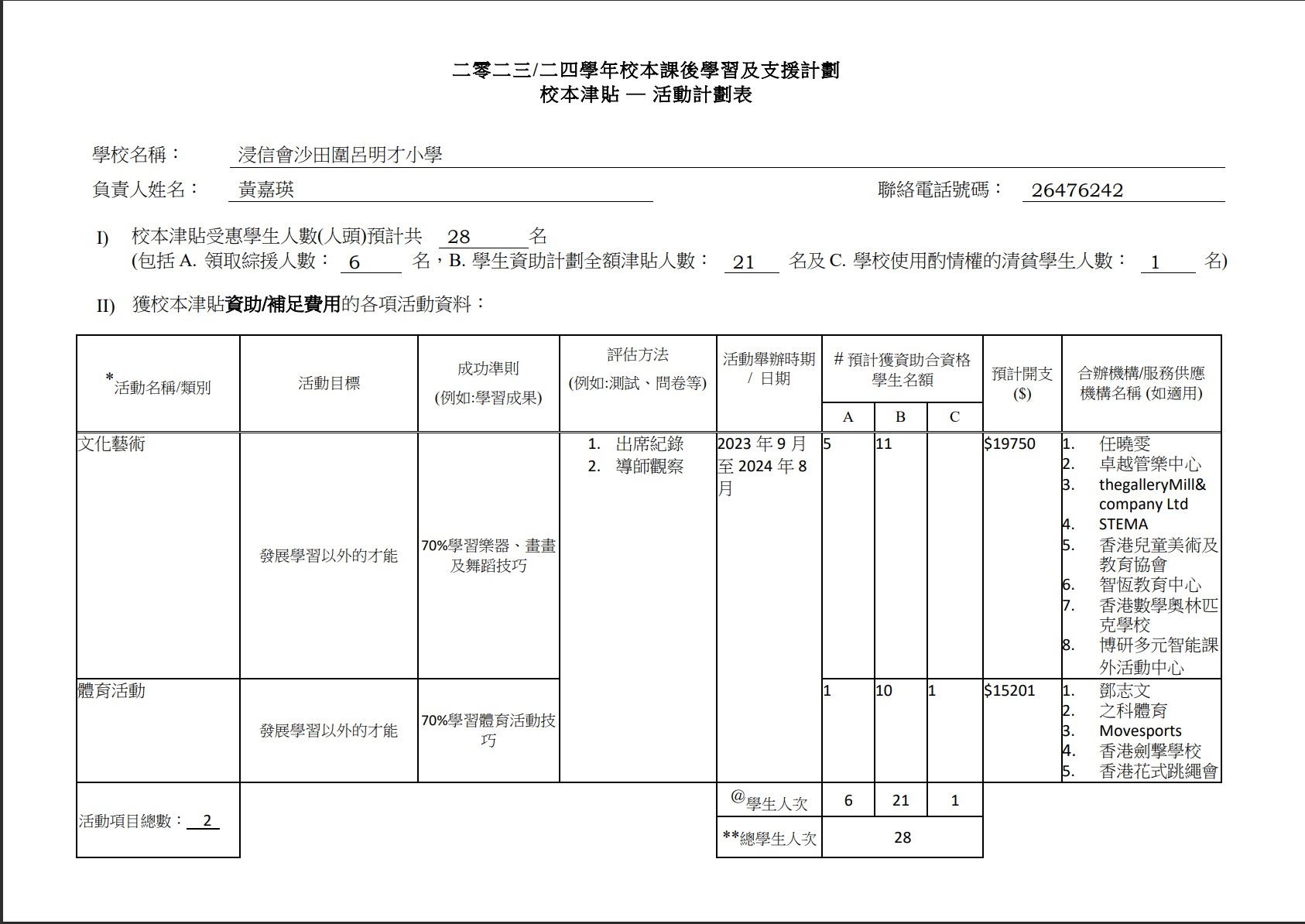 2023-2024 年度「校本課後學習及支援計劃」活動計劃