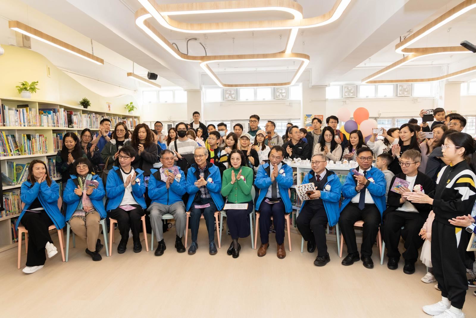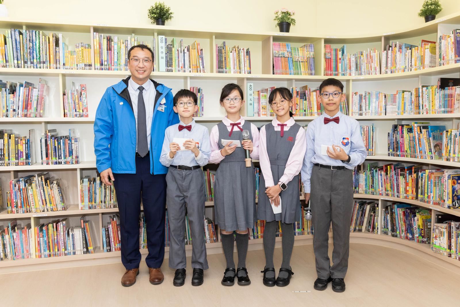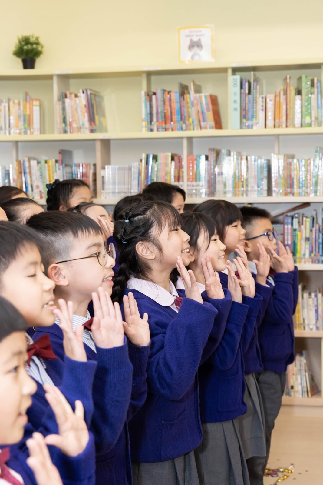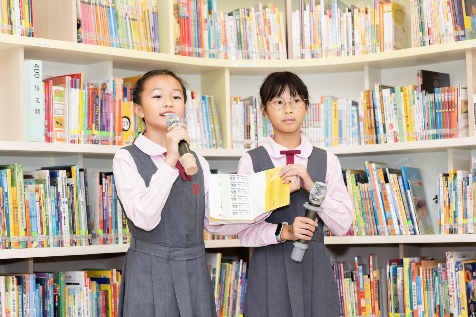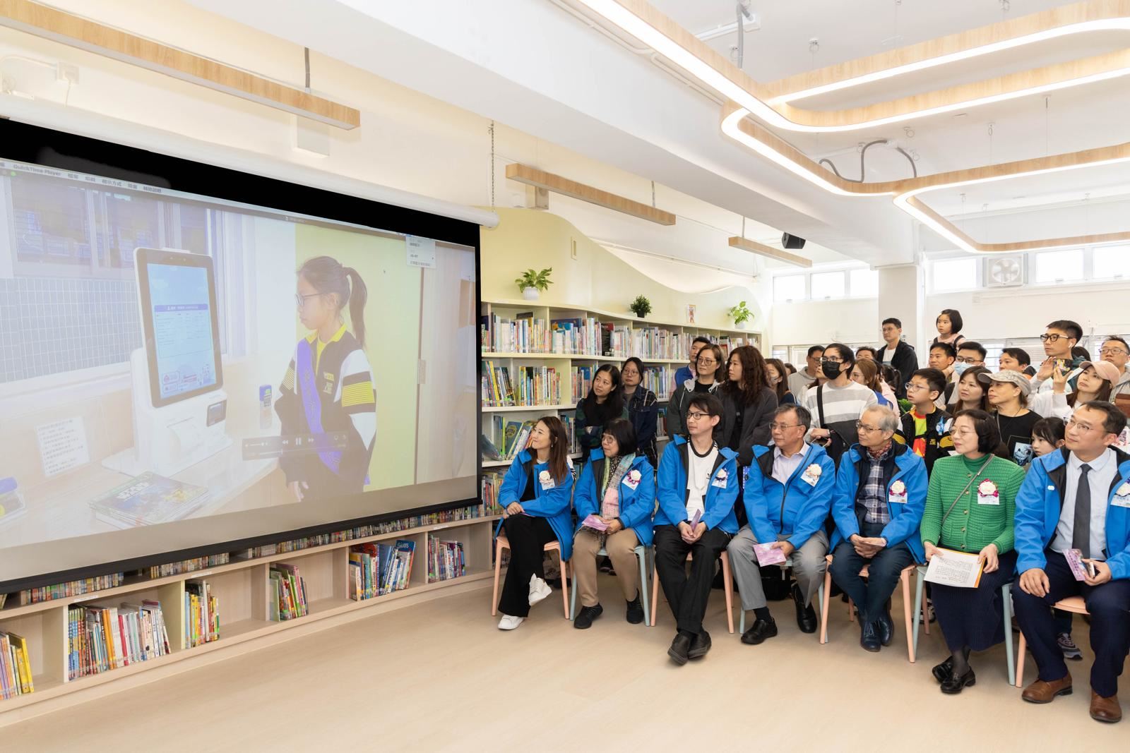 啟動典禮上,學生大使和故事爸爸向嘉賓介紹了本校推動閱讀的多元化活動及圖書館的智能設備。本校榮獲朗誦節冠軍的中年級粵語集誦隊的表演亦讓典禮生色不少。隨著開幕儀式中書本的展開,五彩斑斕的蝴蝶翩翩起舞,象徵著圖書館激發學生自主學習的活力,充滿尋求智慧的動力!