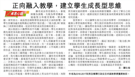 正向融入教學,建立學生成長型思維